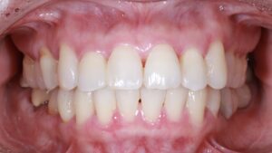 前歯の傾きに対して、審美的に自然な見た目にするために全体のバランスを見ながら細かい調整を何度も繰り返して行きました。