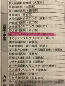 詳しい選出方法は分かりませんが、インプラントの専門家たちにアンケートを実施して全国の歯科医院を選出したらしいです。