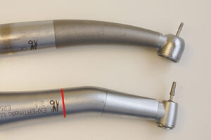 エナメル質や、象牙質に存在する虫歯を削りとる際にしようするドリル達です。タービンは主にエナメル質の虫歯、コントラは象牙質にできた虫歯を削りとる時に使用します。それぞれ専用のドリルの先端がありますので